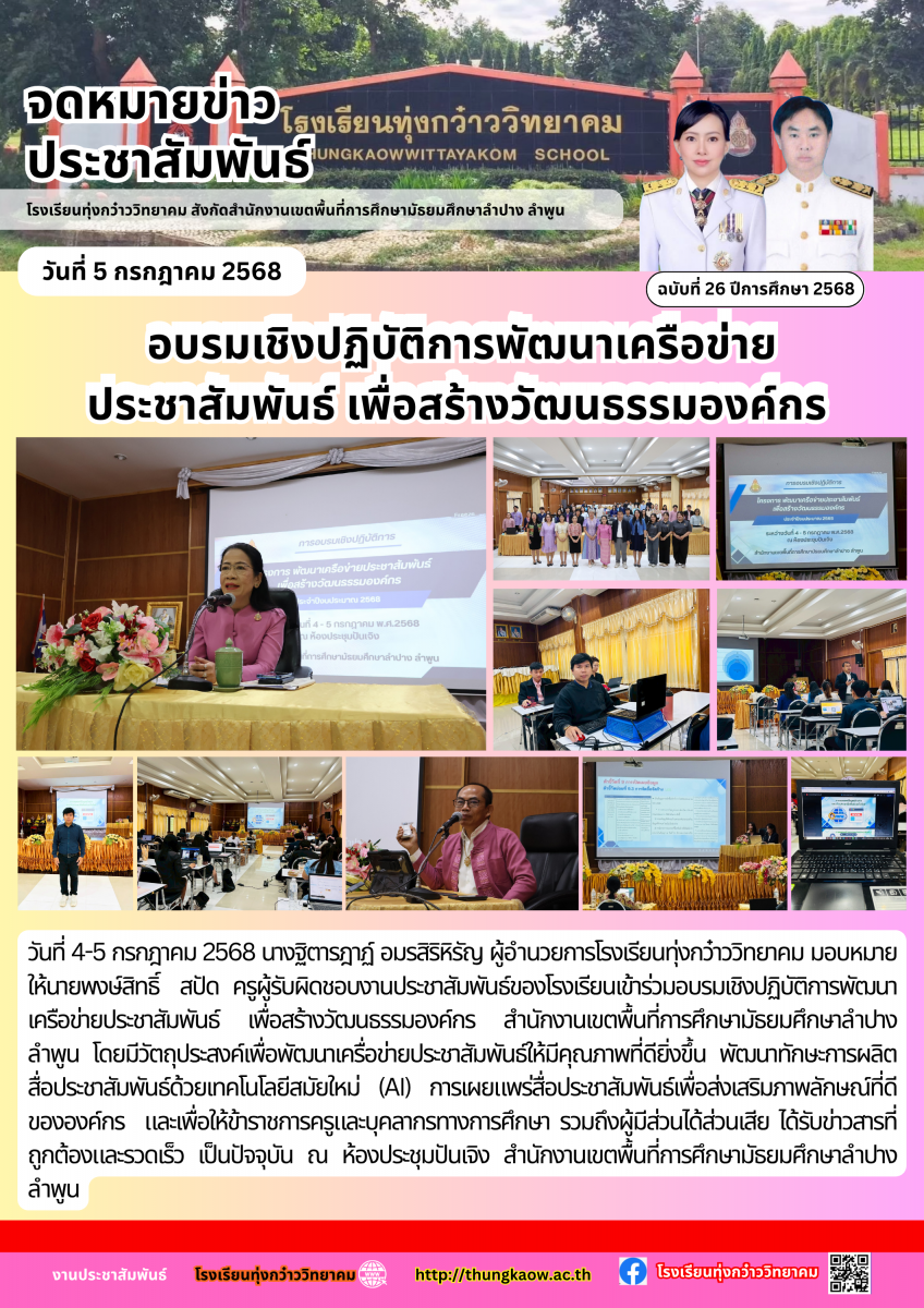 อบรมเชิงปฏิบัติการพัฒนาเครือข่าย ประชาสัมพันธ์ เพื่อสร้างวัฒนธรรมองค์กร